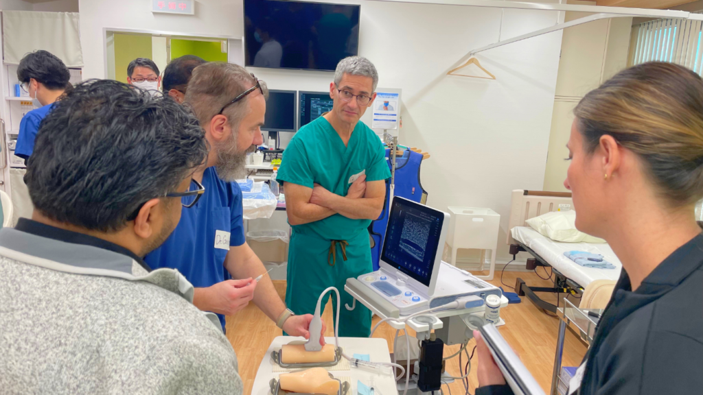 同プログラムに参加されたドクター方は、当院の表参道院にもお越しいただき、実際の治療の様子を見学されたほか、治療モデルを使用した穿刺の技術トレーニングも体験いただきました。