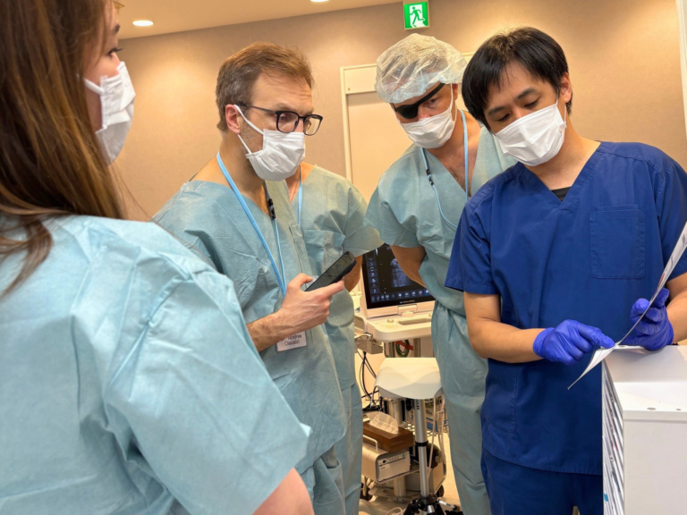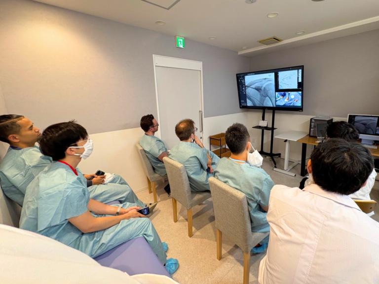 คณะแพทย์ผู้เข้าร่วมโปรแกรมได้เดินทางมาเยี่ยมชมที่ Tokyo Aoyama Clinic ของเรา เพื่อดูงานขั้นตอนการรักษาจริง และได้เข้ารับการฝึกอบรมทักษะเชิงปฏิบัติ (Hands-on) ในการเจาะหลอดเลือดแดงโดยใช้แบบจำลองสำหรับการรักษาโดยเฉพาะ